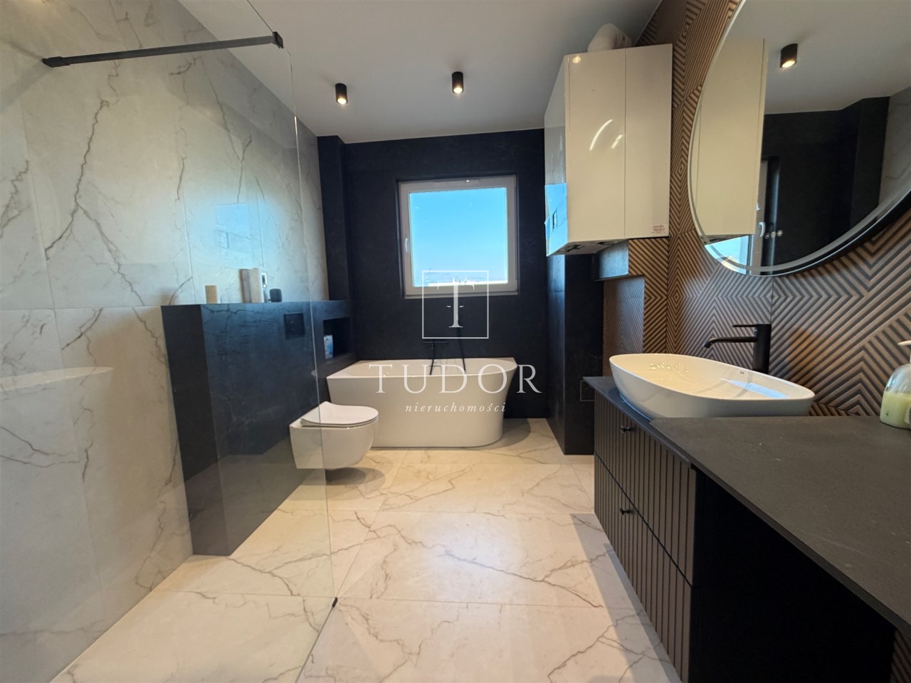 Piętro : 4 sypialnie ( podłogi panele), łazienka z kabina i wanną ( glazura i terakota)