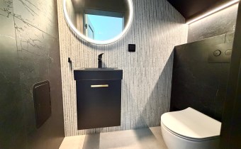 Na podłogach terakota, ściany gładzone malowane, wc wykończone w nowej glazurze i terakocie.