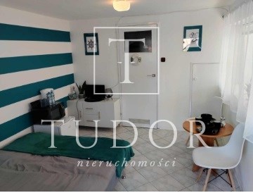 Dom wolnostojący 2-poziomowy z 1982r usytuowany na działkach o pow.462m2 z możliwością rozbudowy o następny poziom z poddaszem użytkowym włącznie . Na parterze 2 pokoje samodzielne świeżo po remoncie , po ok. 20m2 z łazienką i wc ( jeden z bezpośrednim wyjściem do ogródka ) oraz łazienka z wc . Na piętrze 5 pokoi ( jeden duży ok.25m2 , dwa następne po ok. 18m2 - 4- osobowe ) oraz 2 pokoje mniejsze 2-3 osobowe w większości z balkonem i łazienką z wc. W budynku znajdują się 2 pomieszczenia warsztatowe po ok. 12m2 każdy - z możliwoscią wykorzystania na pokoje gościnne , część podpiwniczona .Ogrzewanie centralne - kocioł ; węgiel ,drewno z możliwością przejścia na gaz, na dachu panele słoneczne 2.5kv co daje ok. 8 miesięcy podgrzewania wody za darmo. Standard średni