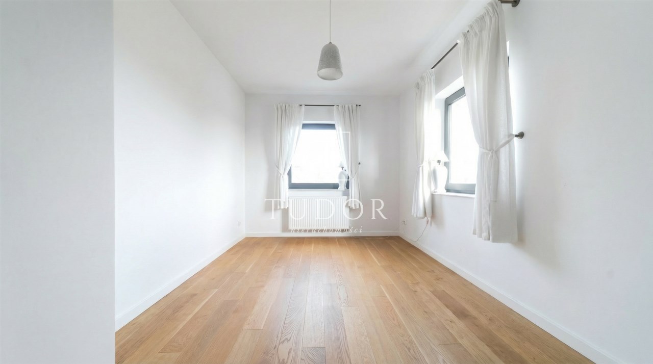 podłogi z drewna dębowego, drewniane drzwi oraz zabudowy stolarskie.