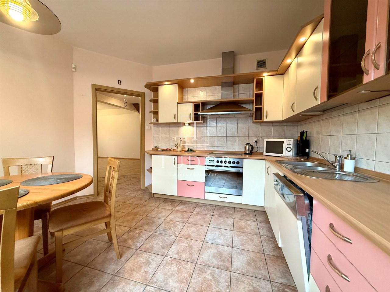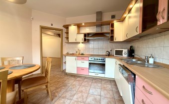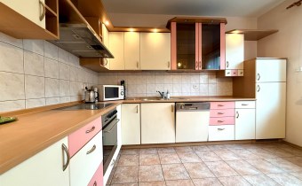 • kuchnia (13,5 m²) – w pełni umeblowana i wyposażona w sprzęt AGD (lodówka, zmywarka, piekarnik, płyta, okap),