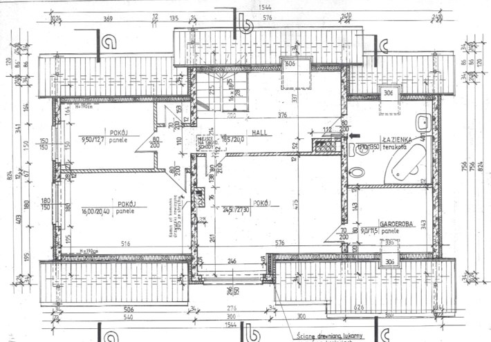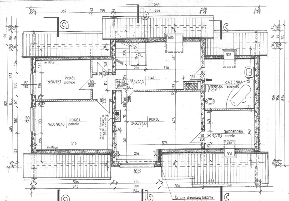 Powierzchnia pokoi 32; 24,5; 16; 9,5 m2