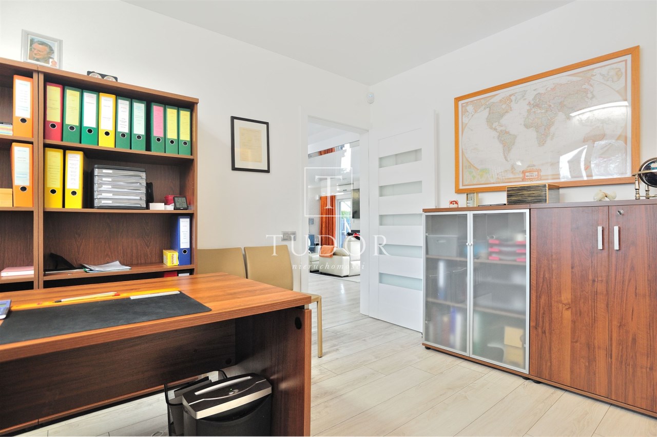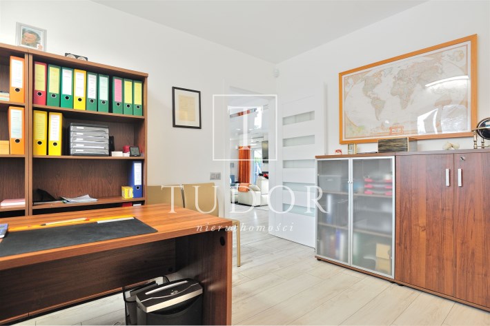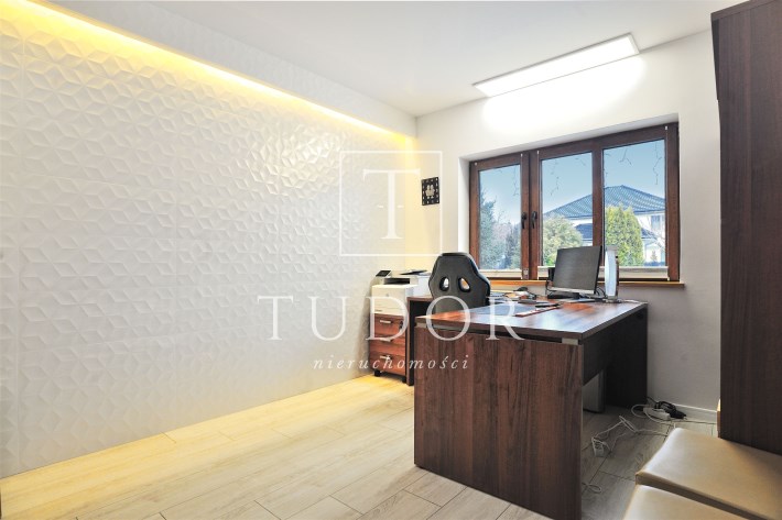 Na parterze: salon z kominkiem , kuchnia , pokój/gabinet do pracy, łazienka z prysznicem, obszerne pomieszczenie gospodarcze oraz garaż.