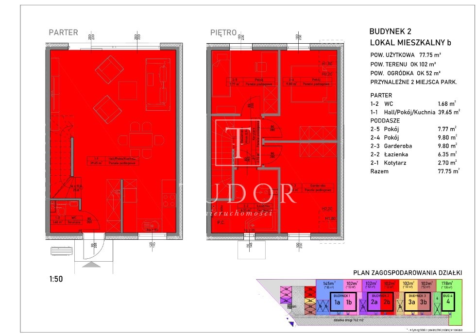 Budynek nr 2 i 3 – lokale a i b o pow. ok 77,75m2: w cenie: lokale a – 799 tys. zł, lokale b – 770 tys. zł.