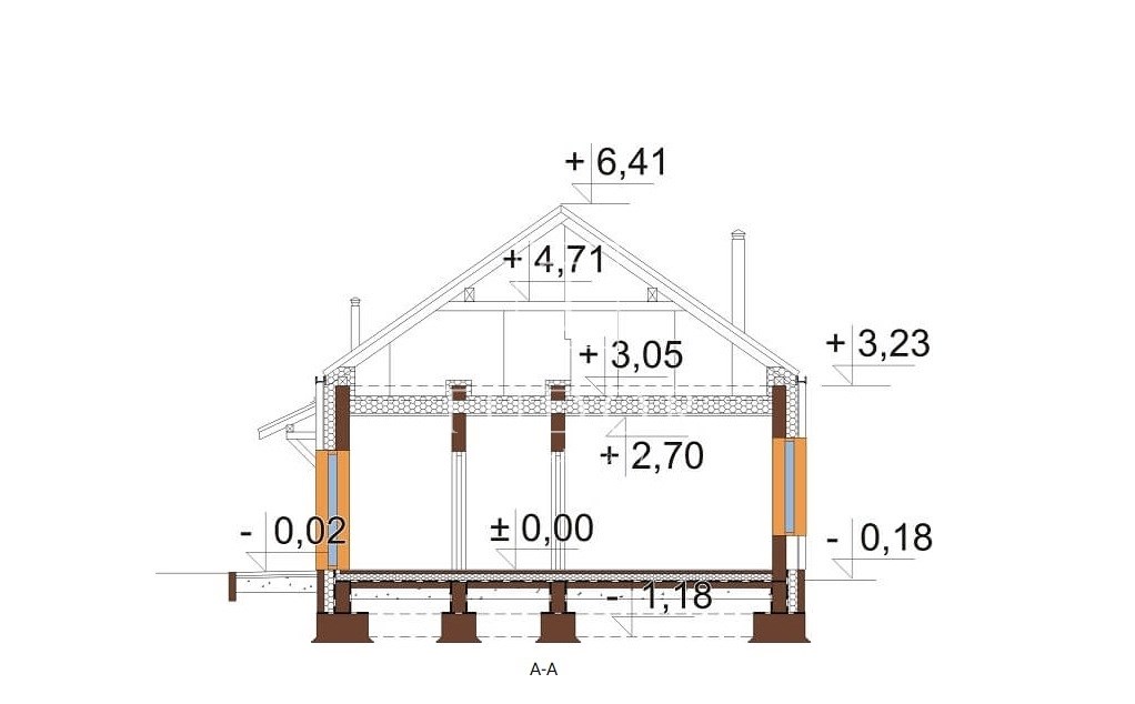 - dach: więźba drewniana, dachówka ceramiczna płaska CREATON, izolacja wełna ISOVER 15 cm 0,37