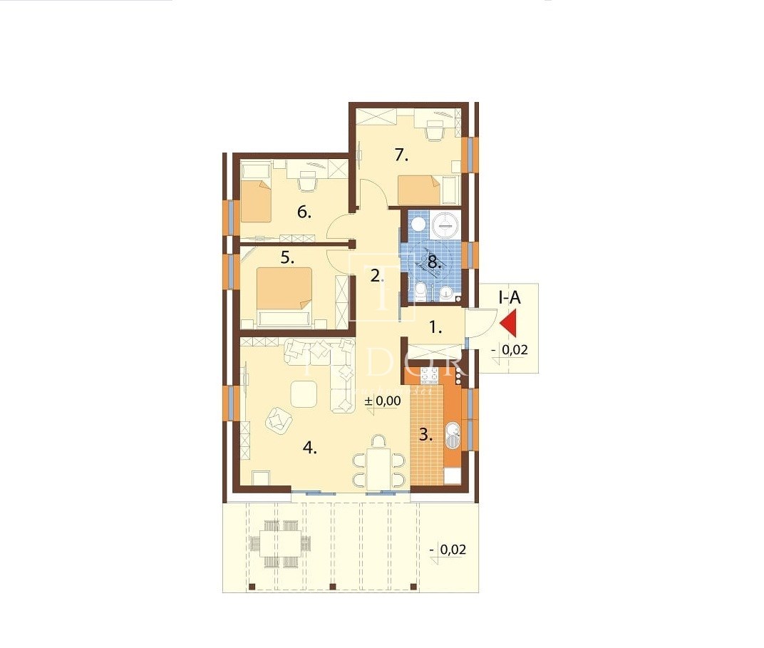 Ergonomiczny dom, zaprojektowany z myślą o praktycznych aspektach użytkowania. Bardzo słoneczny i przytulny, taras i ogród od strony południowo-wschodniej. Nowoczesny i ekologiczny budynek przeznaczony dla rodziny 3-4 osobowej, niepodpiwniczony, zewnętrzne dwa miejsca parkingowe.