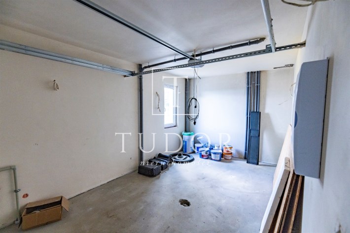 droga wewnętrzna i podjazdy do garaży wykonane z polbruku, miejsca postojowe z ekokraty