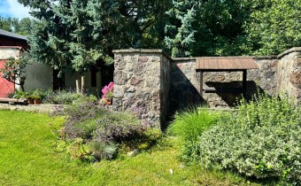 Pęzino miejscowość położona tylko 10 min od Stargardu, 7 km od Marianowa, 40 min od Szczecina. Dom wolnostojący, piękna duża działka, całość tworzyła gospodarstwo rolne. Niezmiernie rzadko można spotkać taką nieruchomość, gdzie można odpoczywać w otoczeniu przyrody, słuchać ptaków i szumu rzeczki a jednocześnie wyjść " za próg" i mieć sklep, przystanek, pocztę szkołę itd. Dom pierwotnie jednorodzinny na potrzeby mieszkańców został przerobiony tak , aby służył dwóm rodzinom. I tak: są dwa niezależne wejścia. Jedna część po remoncie, druga nie. Część wyremontowana to : przedpokój, salon, jadalnia i otwarta kuchnia. Na tym poziomie jest jeszcze łazienka. Schodami idziemy na poddasze użytkowe gdzie jest pokój, sypialnia, garderoba i przedpokój z zabudową z szaf typu Komandor. W salonie jest kominek z rozprowadzonym płaszczem wodnym. Parter to powierzchnia ok 50 m2, poddasze podobnie. Drugą cześć domu tworzy " lustrzane odbicie" . Ta część nie została wyremontowana, co pozwala nowym właścicielom zrobić je wg własnych pomysłów. Na dachu jest blacha, elewacja dobrze utrzymana, okna PCV, tylko w części do remontu zostały dwa na poddaszu, które jeszcze nie zostały wymienione. Tutaj mamy ogrzewanie piecem na węgiel. Na posesji jest garaż jednostanowiskowy, oraz 2 budynki gospodarcze. Dużą zaletą jest jeden z budynków gospodarczych, jest on wolnostojący, składa się z kilku pomieszczeń i jest to doskonała rzecz, do prowadzenia np. działalności rzemieślniczej. Obok stoi szklarnia i jeszcze jeden budynek służący gospodarstwu. Liczne nasadzenia, drzewa ozdobne oddzielają mieszkańców od ulicy, drzewa owocowe pozwolą zapełnić spiżarnię, winorośla, maliny, jeżyny itd. Działka ma kształt nieregularny w jednej części zbliża się do rzeczki. Na chwilę obecną teren pomiędzy działką a rzeką należy do gminy. Można go wydzierżawić, co da możliwość skorzystania z tego sąsiedztwa. Obok jest średniowieczny zamek ( rozbudowany w XIX wieku) , na jego dziedzińcu organizowane są co roku imprezy " rycerskie". Otoczenie bardzo ładne, niskie koszty utrzymania. Można przywrócić pierwotny kształt pomieszczeń, czyli połączyć te dwie części wstawiając tylko drzwi.