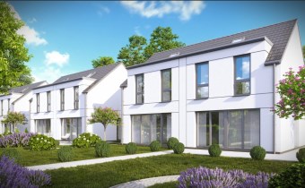 Inwestycja składa się z trzech domów w zabudowie bliźniaczej oraz jednego domu jednorodzinnego.