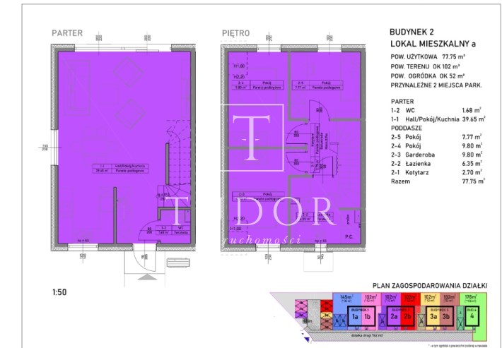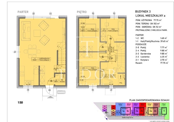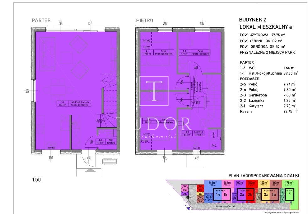 Budynek nr 2 i 3 – lokale a i b o pow. ok 77,75m2: w cenie: lokale a – 799 tys. zł, lokale b – 770 tys. zł.