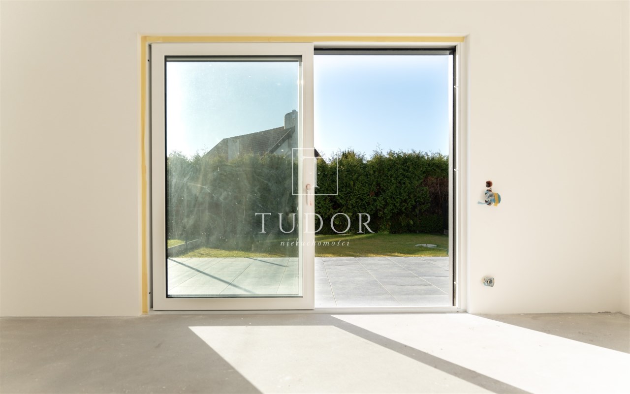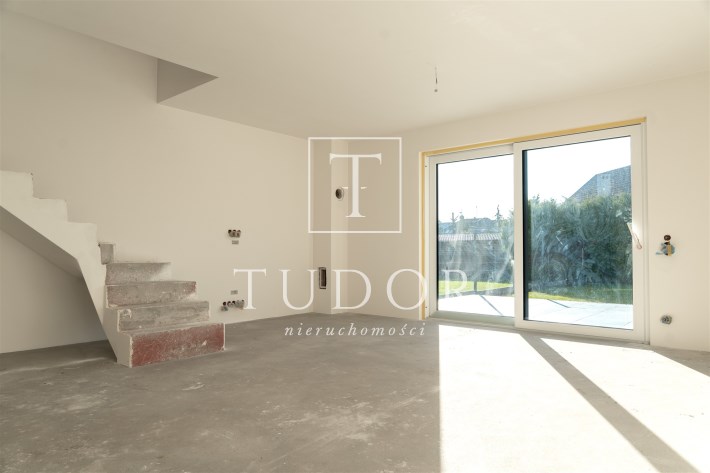Parter : salon z aneksem kuchennym oraz wyjściem na taras i ogród od strony południowej, pokój idealny na biuro lub pokój gościnny, wiatrołap, łazienka oraz pomieszczenie gospodarcze.