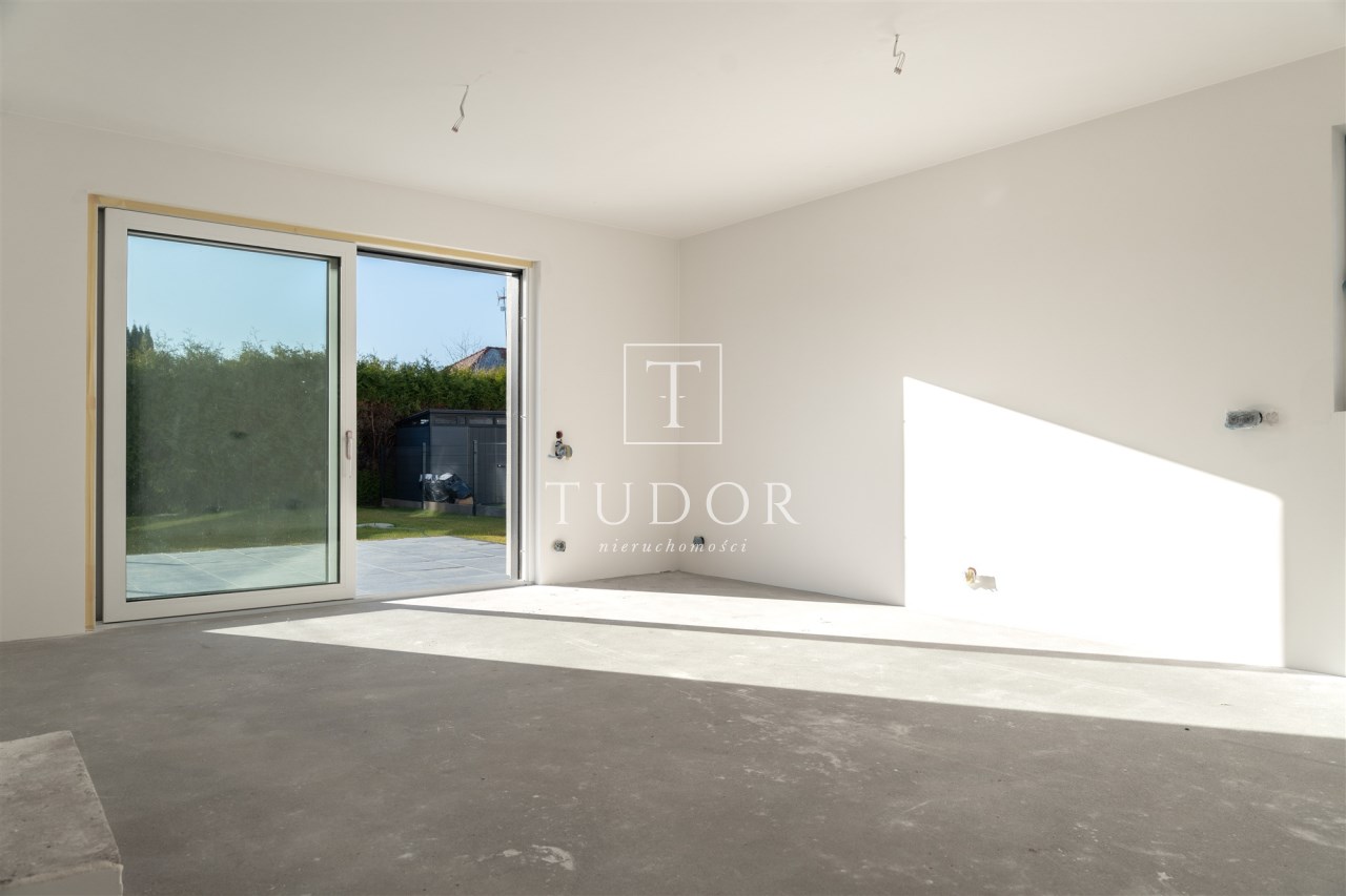 Parter : salon z aneksem kuchennym oraz wyjściem na taras i ogród od strony południowej, pokój idealny na biuro lub pokój gościnny, wiatrołap, łazienka oraz pomieszczenie gospodarcze.