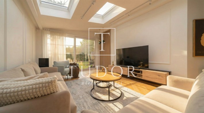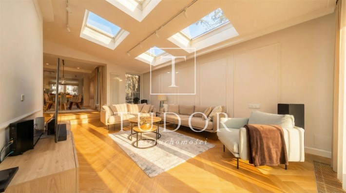 - przestronny salon ze świetlikiem dzięki czemu przestrzeń jest pięknie doświetlona