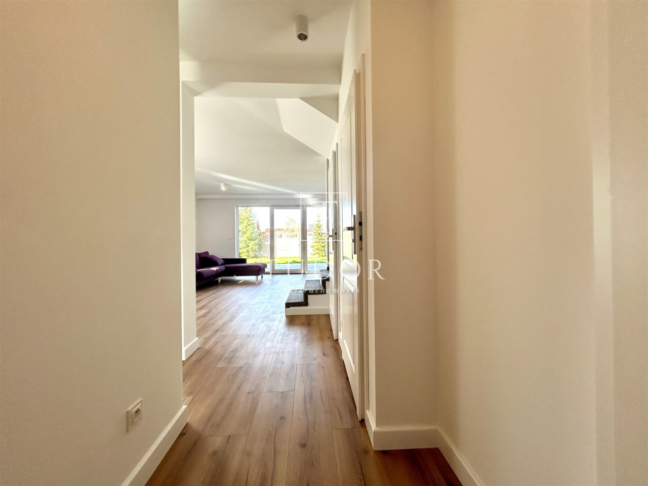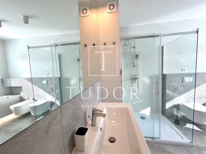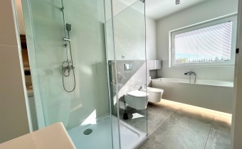 Piętro: trzy sypialnie, garderoba, przestronna łazienka z wanną i prysznicem.