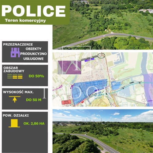 Mamy przyjemność zaprezentować Państwu atrakcyjny teren inwestycyjny o pow. ok. 2,86 ha, składający się z kilu działek w użytkowaniu wieczystym, położony w pobliżu Zakładów Chemicznych Police i Portu Police, w odległości ok. 2 km od planowanego tunelu Police-Święta, będącego częścią Zachodniego Obejścia Szczecina.