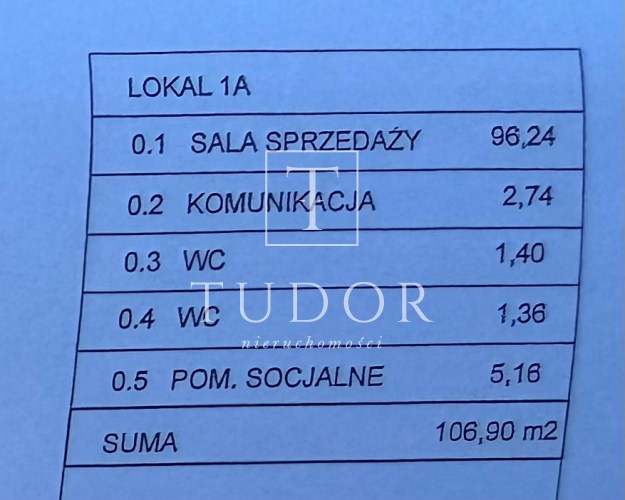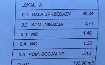 • otwarta przestrzeń główna / sala sprzedaży – 96,24 m²,