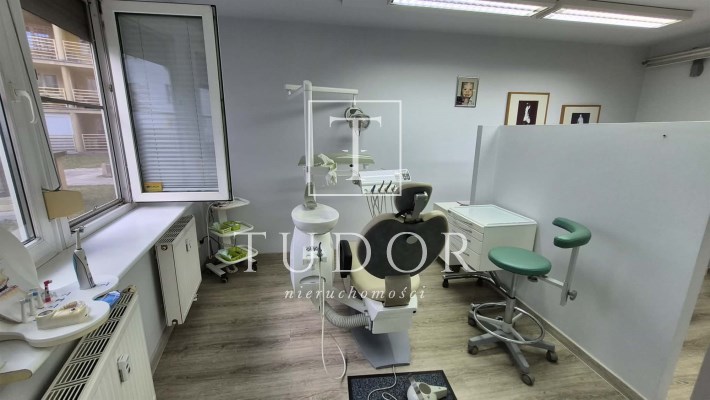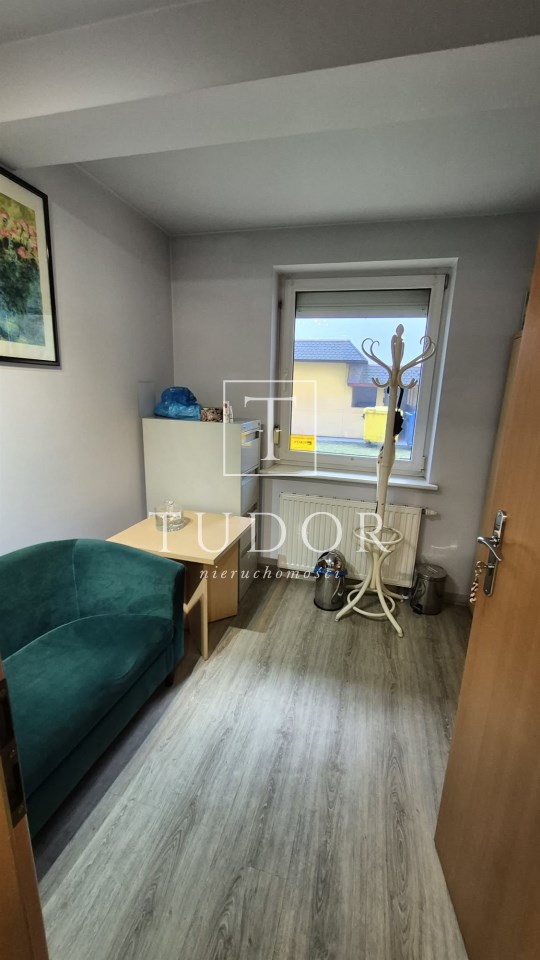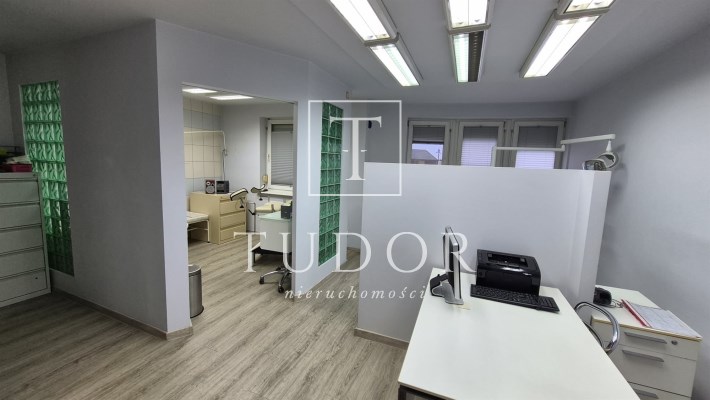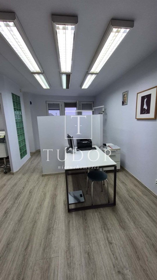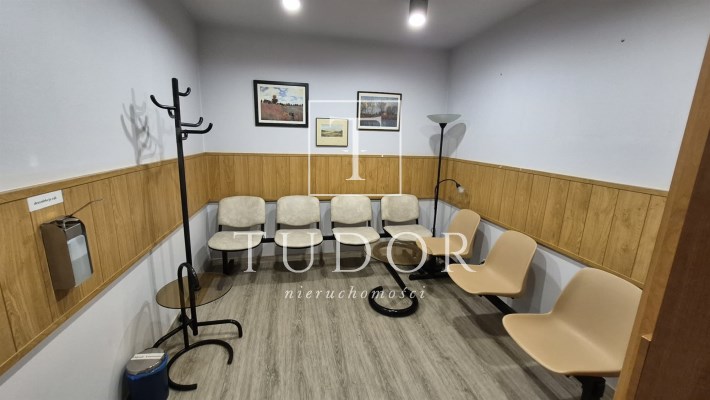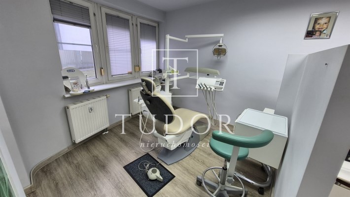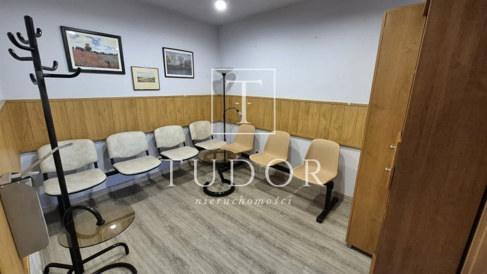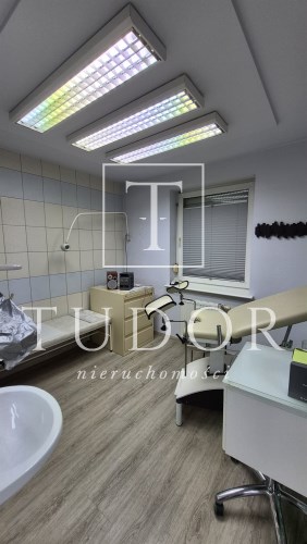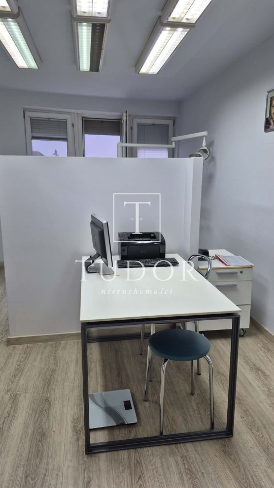 hol, obok jest poczekalnia z niej wejscie do pokoju socjalnego. WC dla pacjentów. Recepcja a za nią 2 gabinety. W głębi lokalu jest aneks kuchenny i łazienka z prysznicem. Niski czynsz ok 450 zł z funduszem remontowym, ogrzewaniem itp do dodatkowe zalety. Okna PCV, rolety, ściany w gładziach malowane, na podłogach są panele i płytki. Oferta również do wynajęcia za 5000 zł + opłaty. Klucze w biurze, oferta na wyłączność. Zapraszam