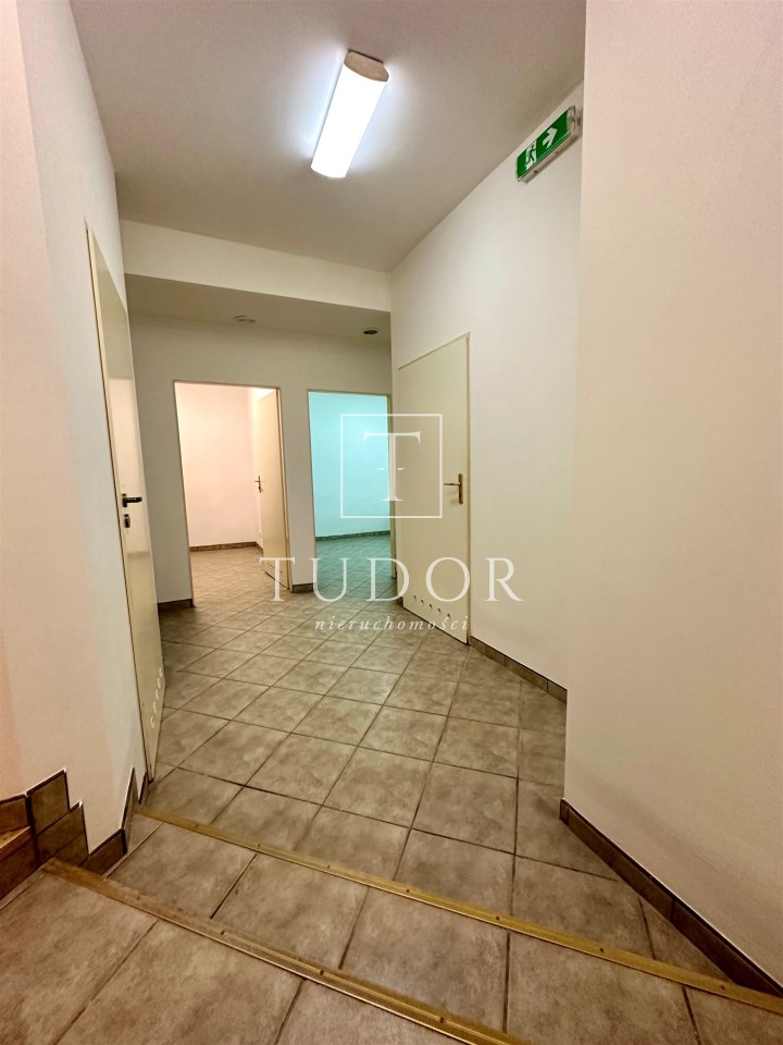 Toaleta z łazienką, łazienka z natryskiem, składzik na sprzęt porządkowy, korytarz, pomieszczenia - magazyny - dwa, pomieszczenie – biuro / magazyn z oknem pomieszczenie socjalne, szatnia.