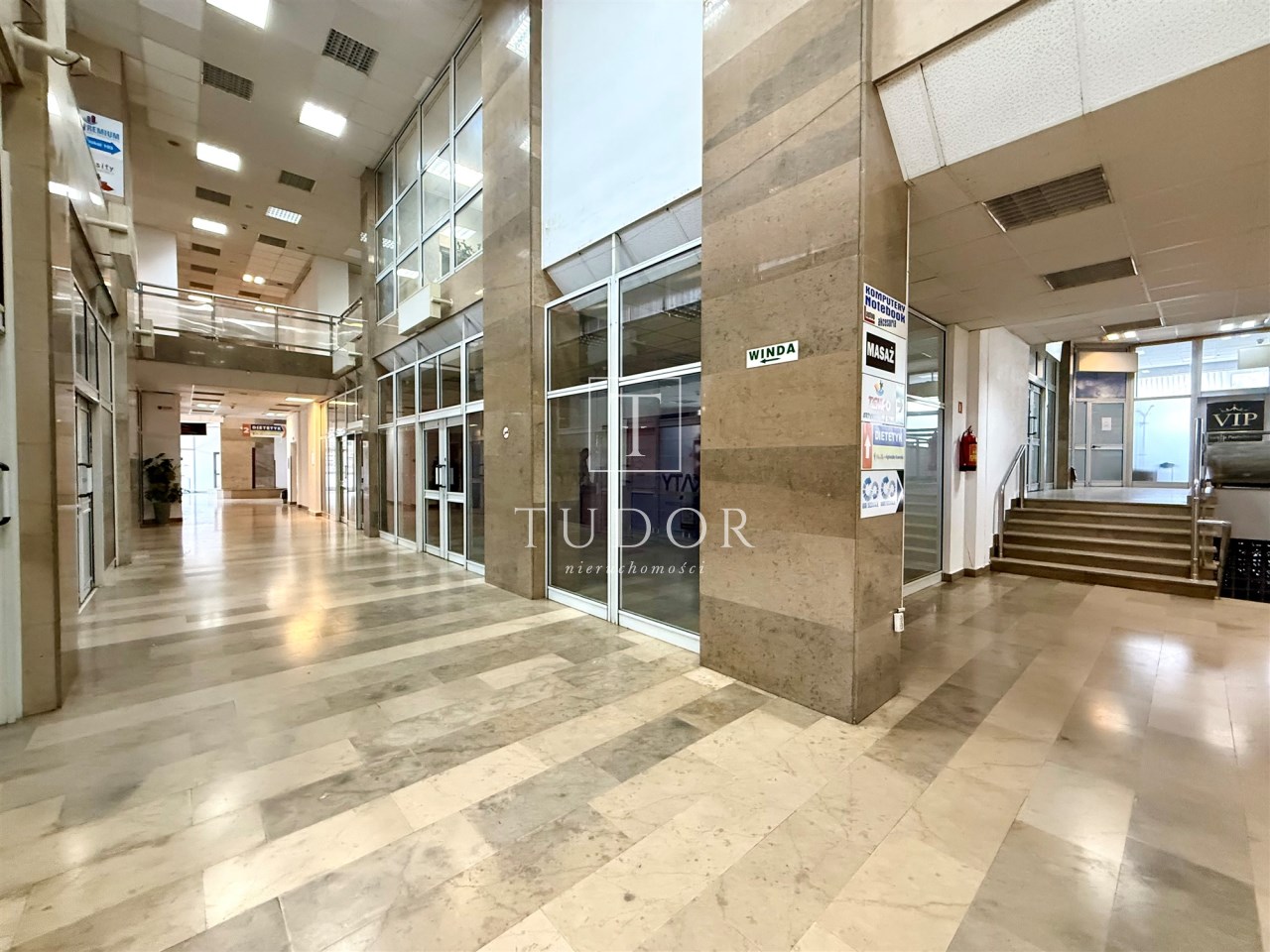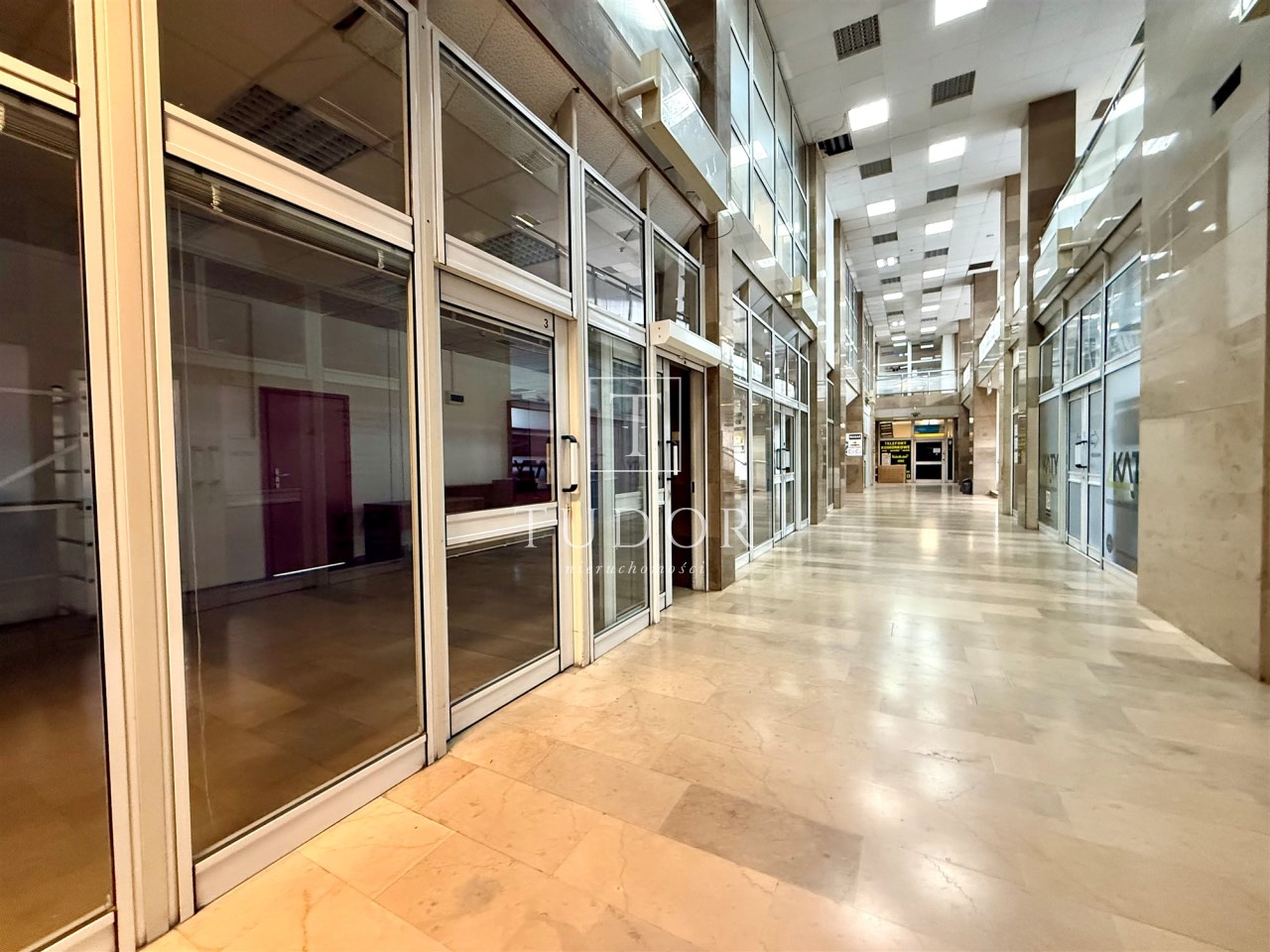 - Wnętrze to kilkupoziomowa galeria handlowa z centralnym hallem, korytarzami i lokalami różnej wielkości.
