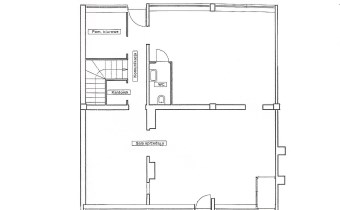 Parter: sala główna z witryną, magazyn, biuro, kantorek oraz wc. Łączna powierzchnia parteru 97,65 m2.