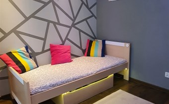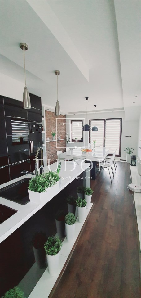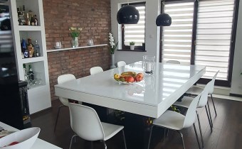 Mieszkanie 3 pok położone na II piętrze w budynku z cegły przy ul Kalinowej. Mieszkanie zaprojektowane wg własnego projektu, robi bardzo dobre wrażenie. Salon z jadalnią i kuchnią tworzy jedną całość. Kształt prostokątny, w środkowej części jest kuchnia z wyspą, po prawej stronie jest salon z wyjściem na taras. Po lewej stronie od kuchni jest jadalnia. Właściciele wykorzystali stół bilardowy przykrywając go blatem. Ten mebel ma "podwójną funkcję". Na co dzień jadalnianą, a gdy mieszkańcy zechcą zdejmują blat i mają stół bilardowy. Z jadalni jest wyjście na kolejny taras. Duży przedpokój ma prawie 10 m2. Jeden z pokoi ma 10,10 m2, obok jest łazienka z wanną, WC. Kolejny pokój ma 9,4 m2 ( sypialnia) z własną łazienką. Nad mieszkaniem jest powierzchnia poddasza ok 50 m2 ( liczona po podłodze). Obecnie śluzy jako magazynek, lecz może być w łatwy sposób dołączona do mieszkania i tym samym zyskuje eis dodatkowy pokój. Czynsz liczony dla 3 osób wynosi 500 zł . Ogrzewanie miejskie z SEC. W mieszkaniu poza siedziskami i kanapą w salonie może pozostać w cenie większość mebli. Okolica urokliwa, z każdej strony tereny zielone . Sklepy, przychodnia, szkoła. Do przystanku autobusowego jest parę minut. Do mieszkania przynależy piwnica ( 5,6 m2). Jest możliwość zakupu miejsca postojowego w garażu podziemnym za 100 000 zł . Termin wydania do uzgodnienia. Oferta na wyłączność. Zapraszam