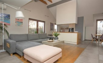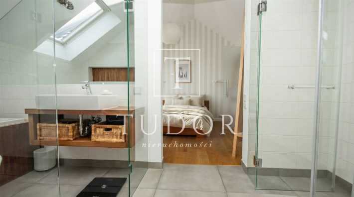 Lokal wykończony w bardzo wysokim standardzie. Wysokie sufity sprawiają wrażenie dużej przestronności a kominek w centralnej części dodaje uroku i ciepła domowego. W mieszkaniu wydzielona strefa Master - z własną łazienką i garderobą. Dodatkowo nad sypialnią zaprojektowaną schowek. W garażu wykonano pawlacz na przechowywanie sprzętu sportowego.