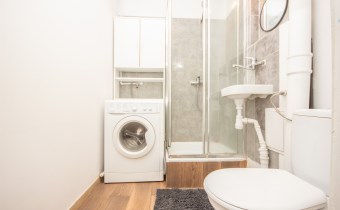 - jednego pokoju z duża szafą, łóżkiem i miejscem do jedzenia