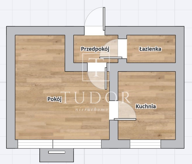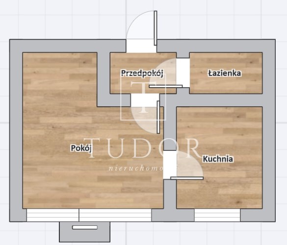 Układ: pokój, osobna kuchnia, łazienka, przedpokój.
