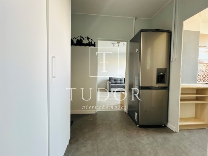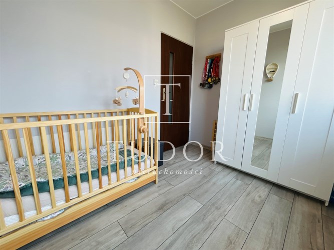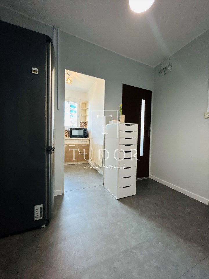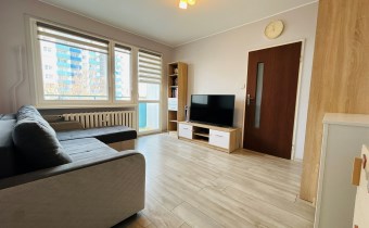 Mieszkanie jest w pełni rozkładowe. Składa się z salonu z wyjściem na słoneczny balkon, sypialni, oddzielnej kuchni, łazienki z WC oraz przedpokoju. W kuchni znajdują się meble i sprzęty w zabudowie kuchennej oraz składany, wygodny stolik. W łazience zamontowano dużą, wygodną kabinę prysznicową. Ściany gładzone, malowane. Na podłogach w pokojach panele wysokiej klasy ścieralności, w kuchni i w przedpokoju panele winylowe, w łazience gres. Drzwi zewnętrzne - antywłamaniowe. Mieszkanie jest gotowe do wprwadzenia bez żadnych nakładów finansowych - wszystkie meble i sprzęty pozostają do dyspozycji nowego właściciela. Usytuowanie mieszkania w budynku od strony zachodniej sprawia, iż mieszkanie jest bardzo jasne i ciepłe, co generuje coroczne zwroty za ogrzewanie. Dużym atutem jest przynależna piwnica o wielkości ok. 5 m2.