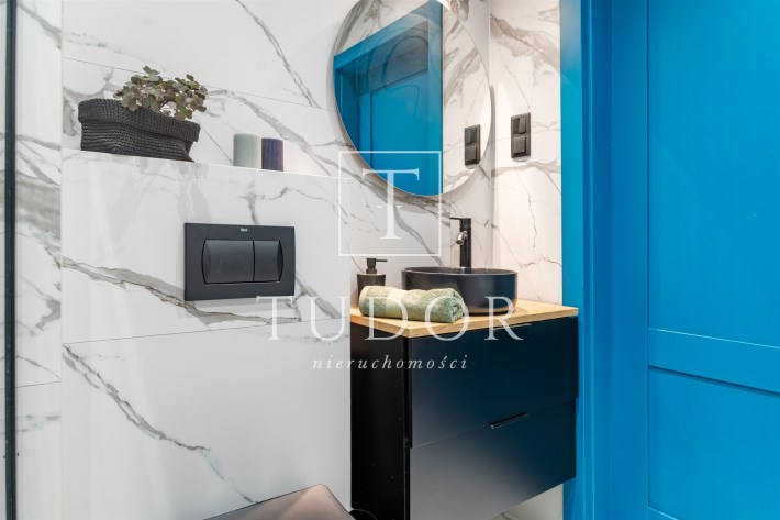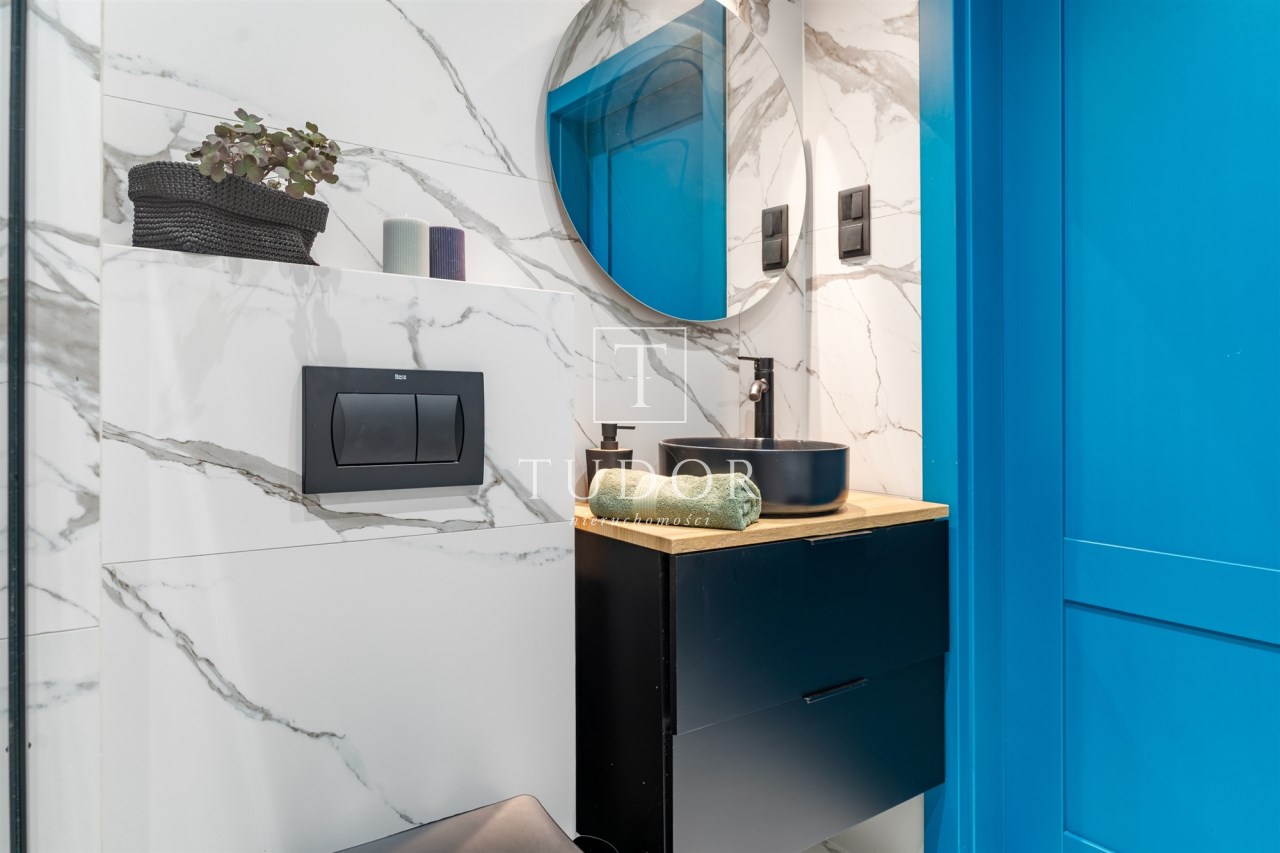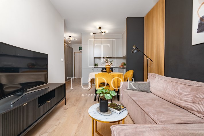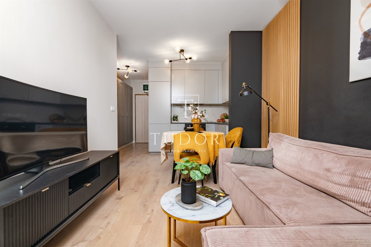 Wnętrze jest w pełni umeblowane i wyposażone w niezbędne sprzęty AGD i RTV, takie jak zmywarka, lodówka, piekarnik, płyta grzewcza, pochłaniacz, pralka oraz telewizor. Dzięki temu nowy właściciel może wprowadzić się od razu, zabierając jedynie osobiste rzeczy. Mieszkanie może również stanowić atrakcyjną opcję inwestycyjną, gotową do wynajmu bez dodatkowych nakładów.