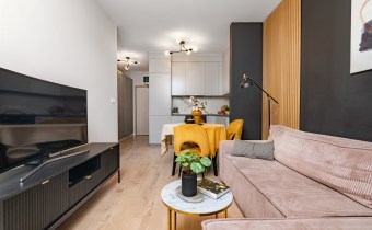 Mieszkanie składa się z pokoju dziennego z aneksem kuchennym, sypialni, przedpokoju oraz łazienki. Z obu pokoi można wyjść na przydomowy ogródek o powierzchni 20 m², który daje możliwość relaksu na świeżym powietrzu.