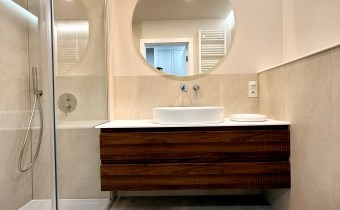 • Łazienki (4,04 m²) z przestronnym prysznicem, płytkami Paradyż zaprojektowanymi przez Gosię Baczyńską i bardzo szeroką szafką (140 cm.),