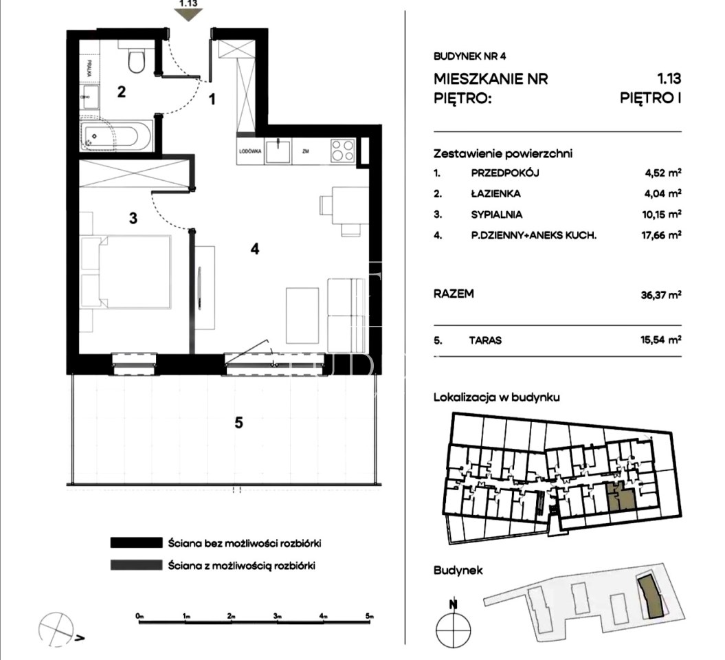 Mieszkanie znajduje się na I piętrze niskiego bloku mieszkalnego z widną. Powierzchnia użytkowa 36,37m2 + przestronny taras 15,54m2, dodatkowo do mieszkania przynależy prywatne zewnętrzne miejsce parkingowe ( w dodatkowej cenie 25.000 pln).