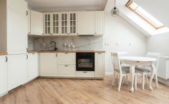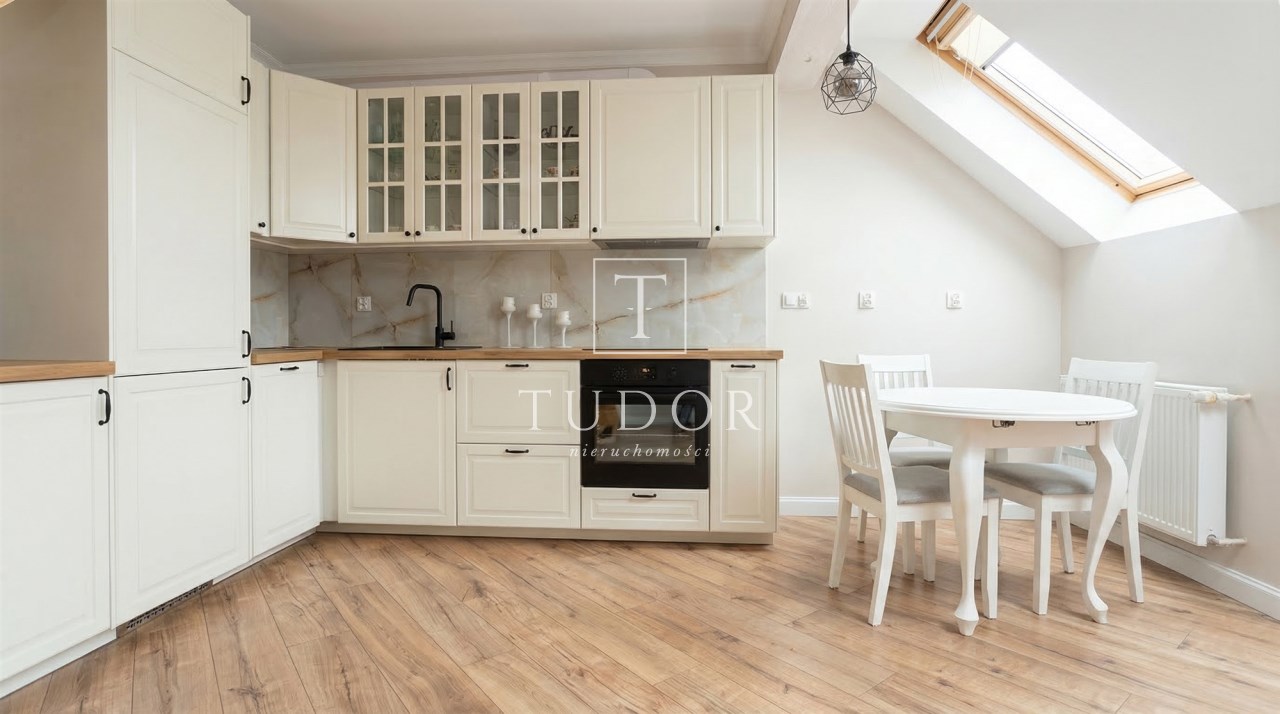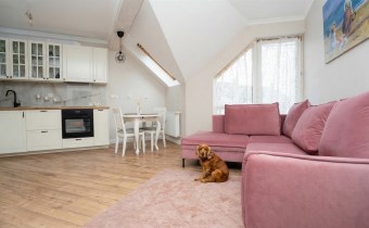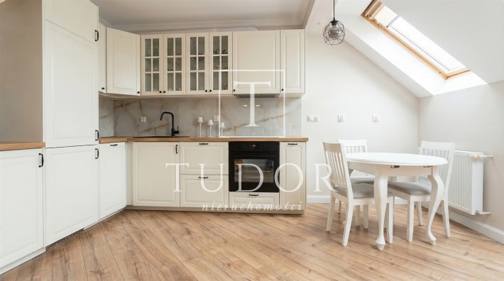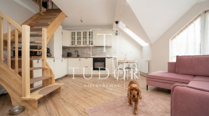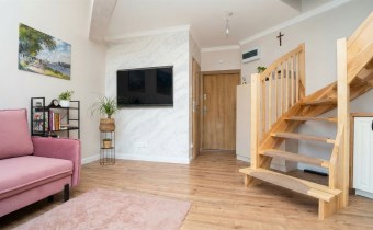 Mieszkanie w 2025 roku przeszło generalny remont, łącznie z wymianą instalacji. Na obu poziomach na podłogach nowe wysokogatunkowe panele. Kuchnia w nowoczesnej zabudowie pod wymiar wraz z nowym sprzętem AGD (zmywarka, indukcja, piekarnik). Z salonu wyjście na spory balkon z ładnym widokiem. Zostały również zrobione nowe drewniane, szerokie schody. Na II poziomie stałe zabudowy, obecnie podzielony jest na część wypoczynkową oraz strefę sypialnianą.