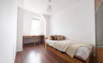 Nieinwazyjne skosy, prawidłowo wykonana adaptacja poddasza w postaci izolacji dachu. W kamienicy wymieniony dach, piony wodno-kanalizacyjne.