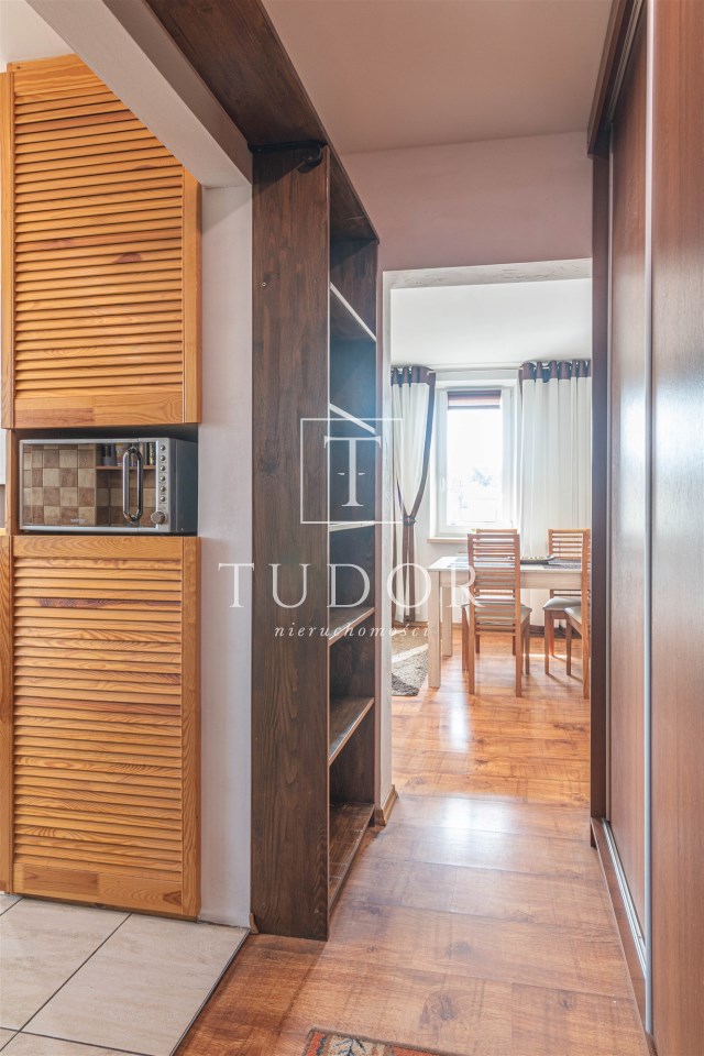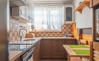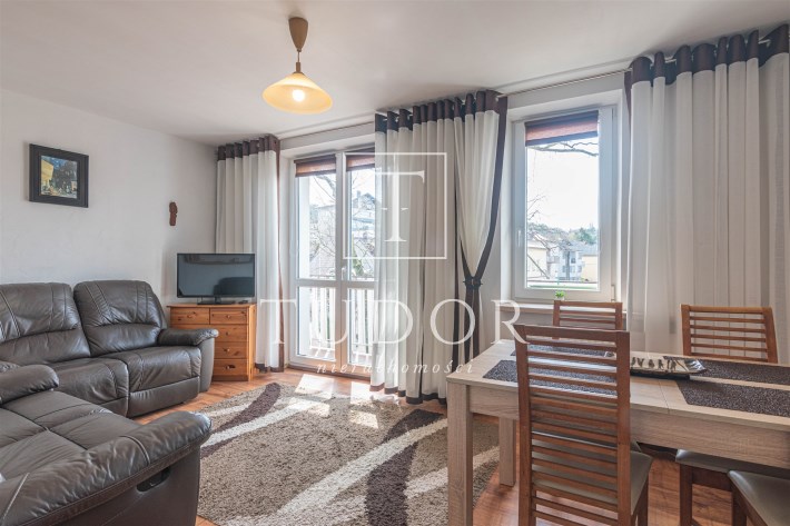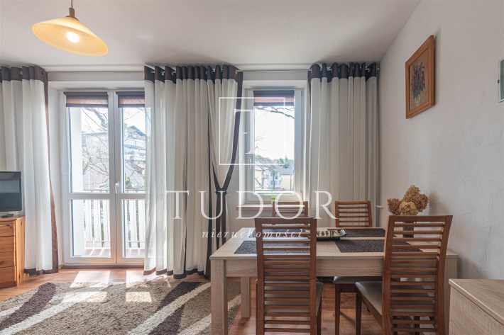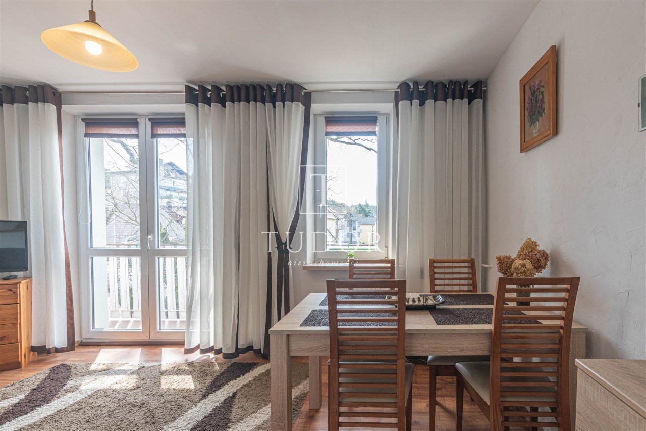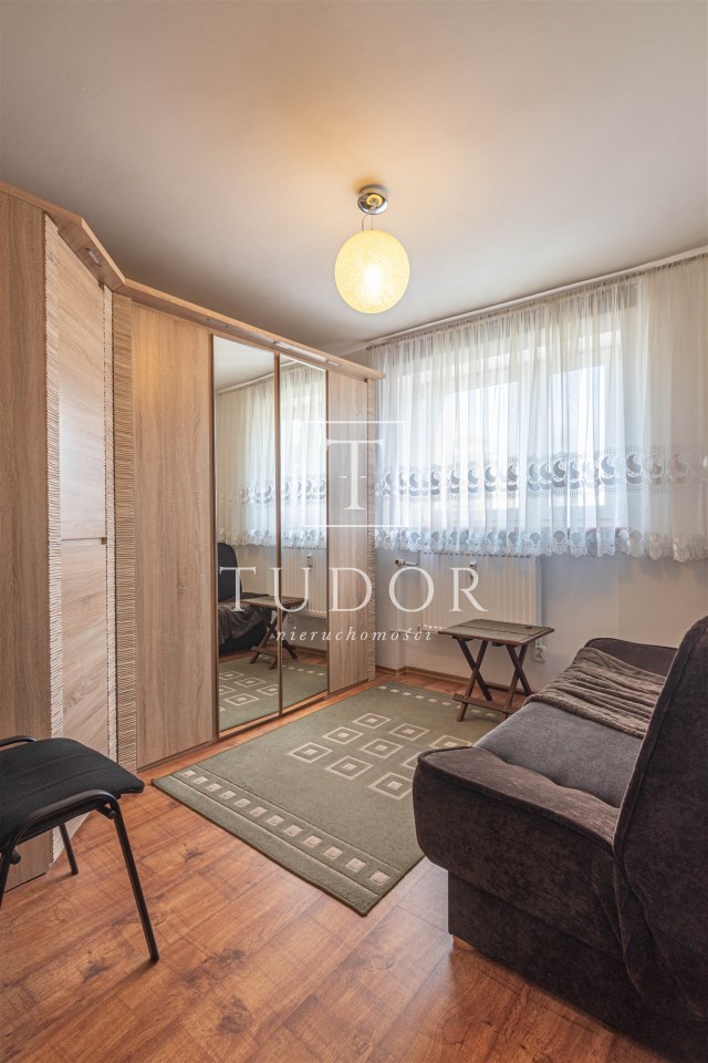 Mieszkanie rozkładowe, z dużego pokoju wyjście na balkon, osobna kuchnia z oknem, łazienka z wc, kabina prysznicowa. W łazience pralka. Ekspozycja okien: duży pokój południowy zachód, obie sypialnie i kuchnia południowy wschód. Mieszkanie kompletnie umeblowane i wyposażone. W kuchni sprzęt AGD: lodówka, kuchenka elektryczna, piekarnik elektryczny, okap, kuchenka mikrofalowa.