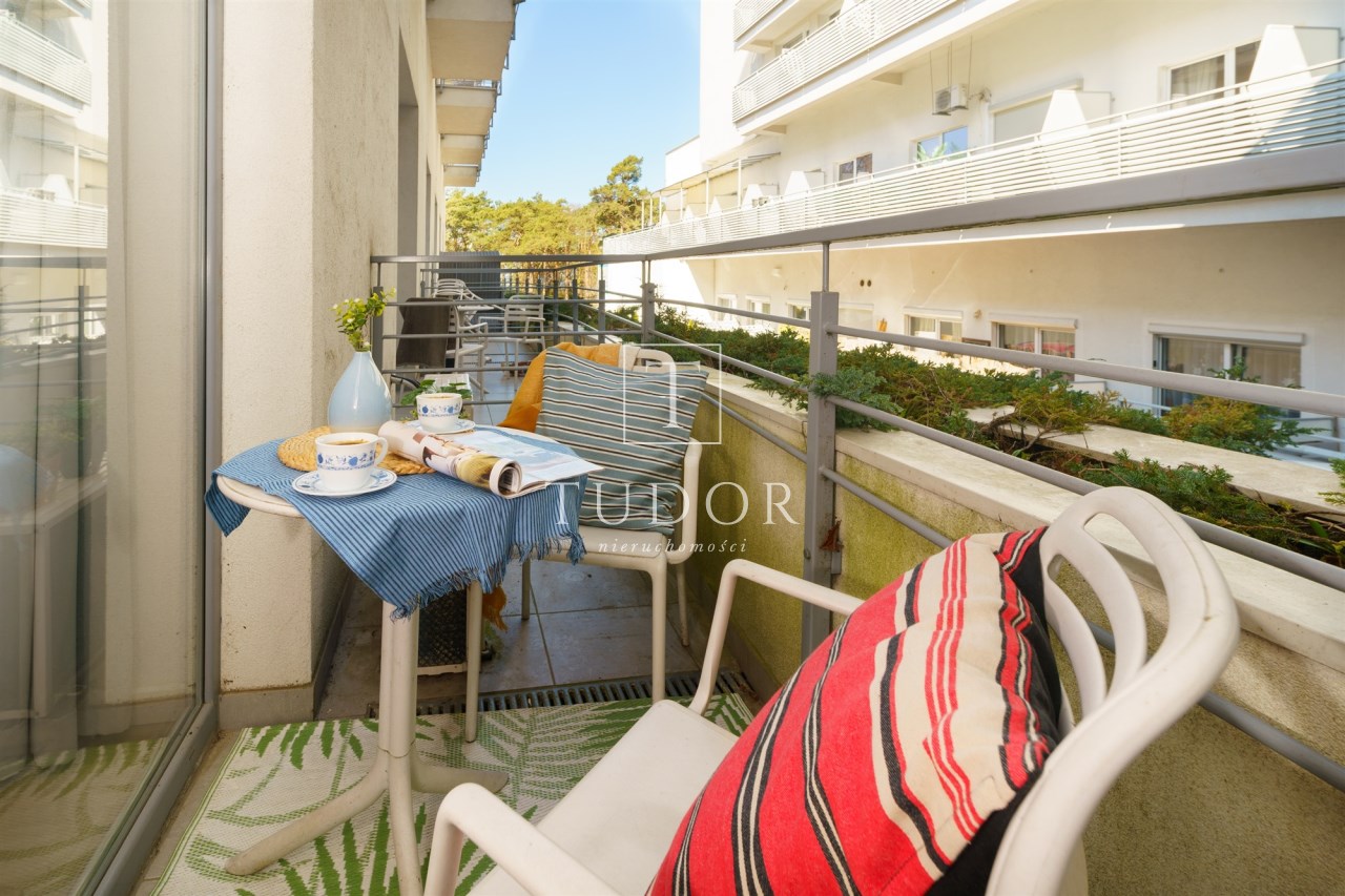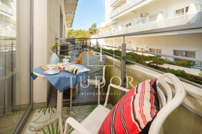 Apartament jest klimatyzowany i sprzedawany z pełnym wyposażeniem – wszystkie meble i sprzęty są w cenie, co oznacza brak dodatkowych kosztów na start. Do lokalu przynależy miejsce postojowe przed budynkiem (bez dodatkowej opłaty).
