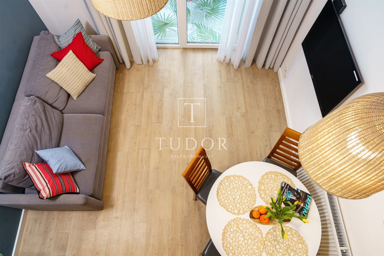 Nieruchomość znajduje się w nowoczesnym budynku z 2017 roku, wyposażonym w windę. Budynek nie jest hotelem – lokale należą do prywatnych właścicieli, tworzących wspólnotę mieszkaniową, co daje pełną swobodę zarządzania najmem. Ze względu na przeznaczenie pod wynajem krórkoterminowy nieruchomość ma status lokalu niemieszkalnego, jednak jest to pełna włsność z udziałem w gruncie.