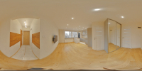 Przedpokój - podłoga marmurowa, ściany częściowo wyłożone egzotycznym drewnem teak.