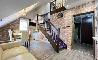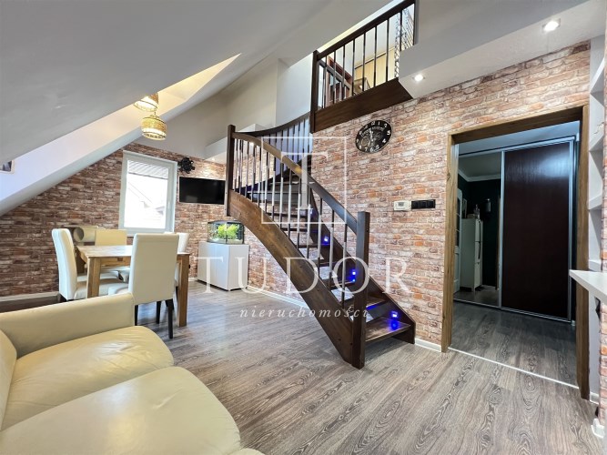 Mieszkanie zlokalizowane jest na 2 i ostatnim piętrze budynku i jest rozmieszczone na dwóch poziomach.