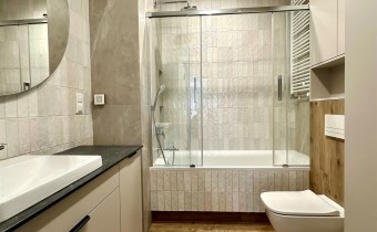Lokal wykończony w podwyższonym standardzie, przy użyciu materiałów wysokiej jakości. W całym mieszkaniu ogrzewanie podłogowe - indywidualne sterowanie w pomieszczeniach.