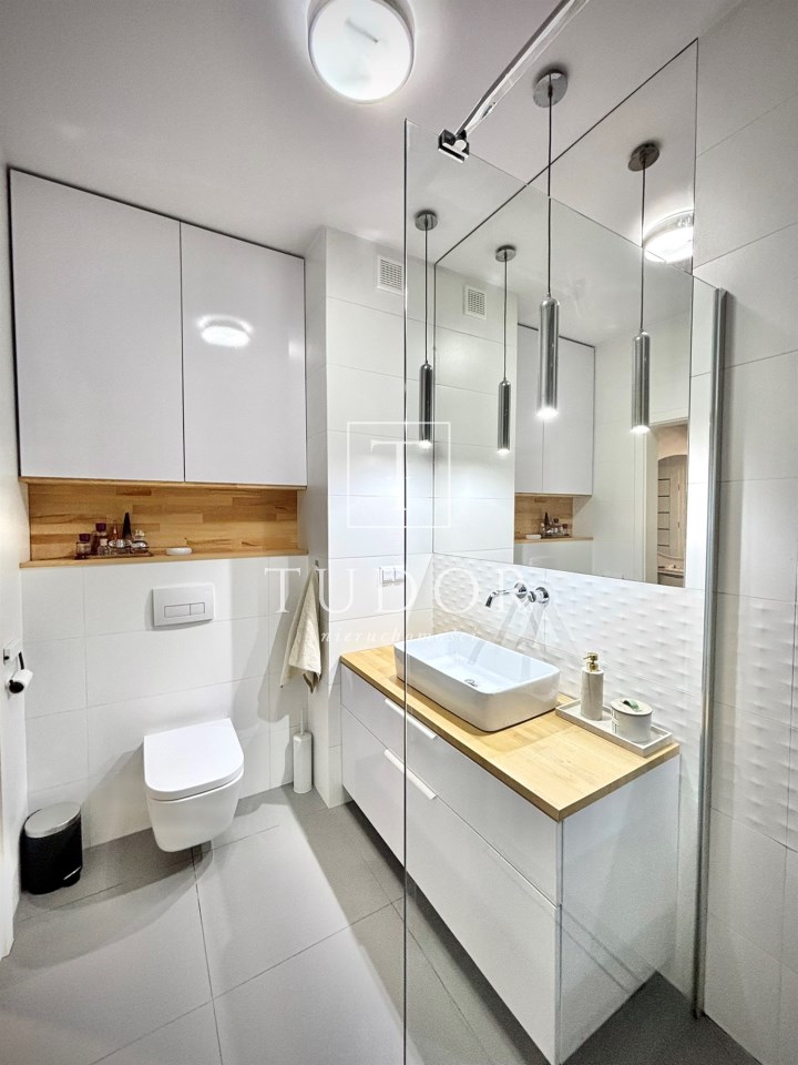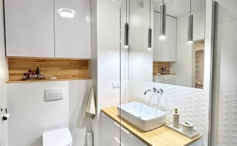 Mieszkanie w pełni zaprojektowane przez architekta wnętrz, z naciskiem na funkcjonalność i ergonomię. Wnętrze mieszkania jest niezwykle jasne, a taras zlokalizowany od zachodu jest perfekcyjnym miejscem na spędzanie letnich wieczorów na świeżym powietrzu.