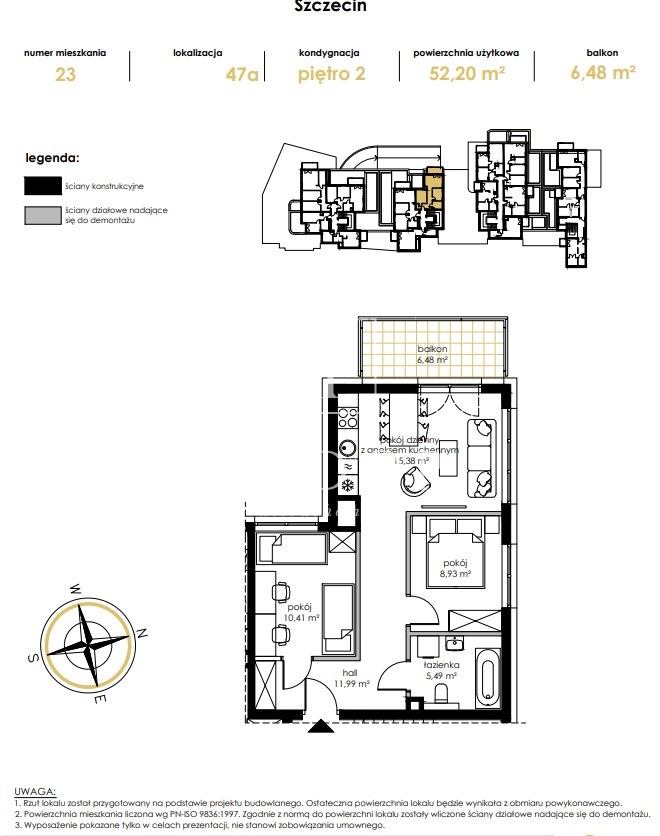W ofercie własnościowe, nowe mieszkanie w samym Centrum Szczecina. Mieszkanie znajduje się na 1 piętrze 6 piętrowego nowoczesnego budynku deweloperskiego o bardzo wysokim standardzie wykończenia.