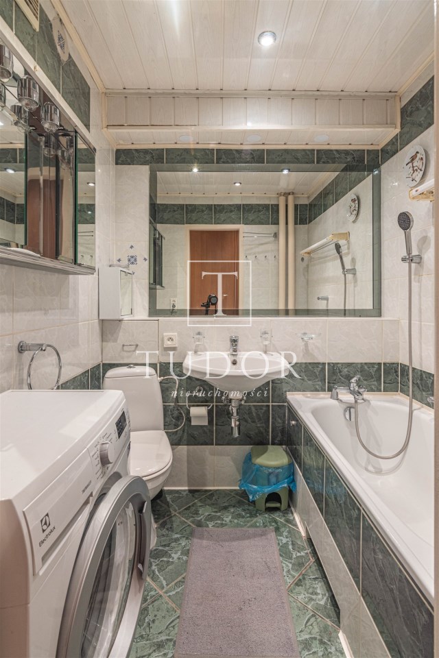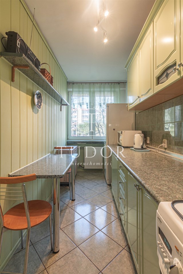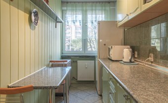 Mieszkanie słoneczne, rozkładowe. Pokoje umeblowane, na podłogach panele, ściany wytapetowane, okna PCV. Mieszkanie dwustronne, duży pokój od strony południowo zachodniej, sypialnia i kuchnia od północnego wschodu. Kuchnia umeblowana i wyposażona w sprzęt AGD: kuchenka gazowa z piekarnikiem elektrycznym, okap, lodówka z zamrażarką. Łazienka razem z wc, wanna, pralka.
