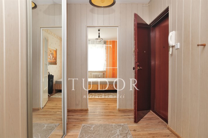 Pokój dzienny z balkonem, w holu szafa, sypialnia od strony południowej.