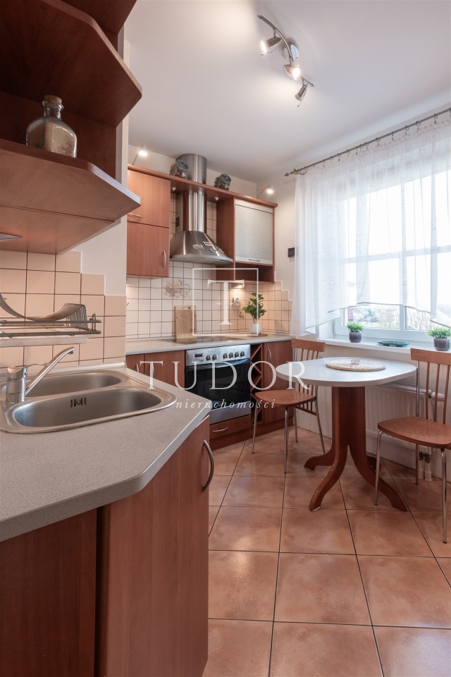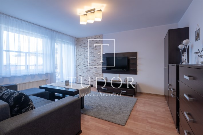Mieszkanie położone na trzecim piętrze budynku, o północno zachodniej ekspozycji okien. Z balkonu rozpościera się piękny widok na zachodnią część miasta. Mieszkanie w bardzo dobrym standardzie, na podłodze panele, ściany gładzone, malowane. W łazience, z wanną i wc, ładna, jasna glazura i terakota. Pokoje w całości umeblowane i wyposażone. Kuchnia umeblowana i wyposażona w sprzęt AGD - płyta elektryczna, piekarnik elektryczny, lodówka, okap, kuchenka mikrofalowa. W łazience znajduje się pralka. Dodatkowo w mieszkaniu znajduje się duża garderoba. Ogrzewanie i ciepła woda z SEC - osobna umowa.