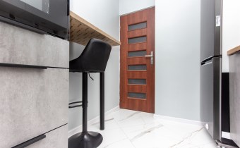 Mieszkanie składa się z trzech pokoi – dużego, przestronnego salonu oraz dwóch oddzielnych pokoi, które doskonale sprawdzą się jako sypialnie, gabinet lub pokój dla dziecka. Kuchnia jest oddzielna i w pełni wyposażona. Znajduje się w niej lodówka, zmywarka, mikrofalówka oraz piekarnik. Kuchnia posiada pojemne szafki, duży blat roboczy oraz wygodny barek śniadaniowy, który dodaje wnętrzu funkcjonalności i komfortu.