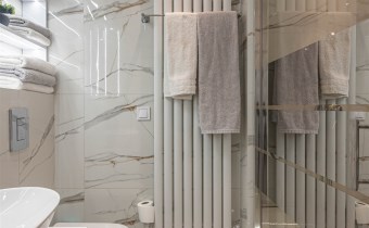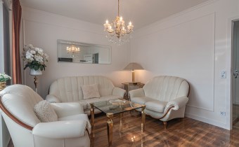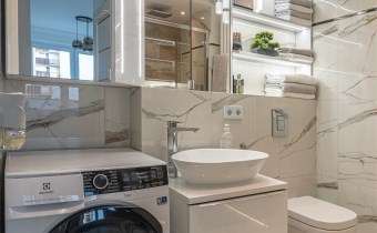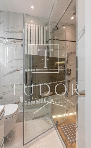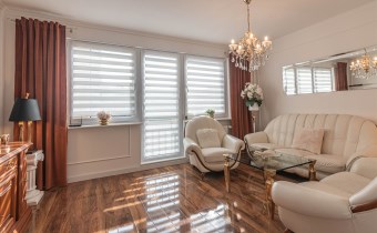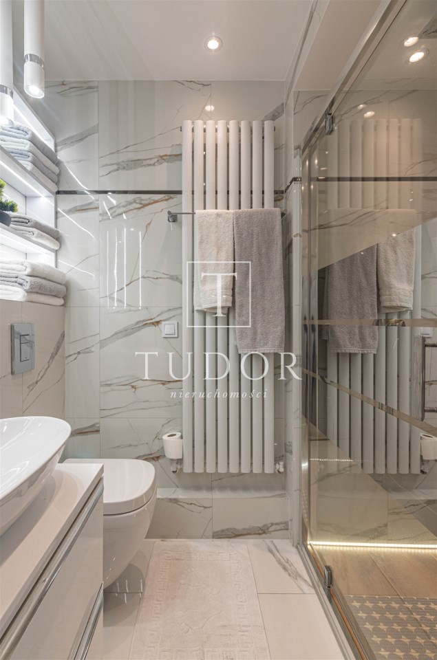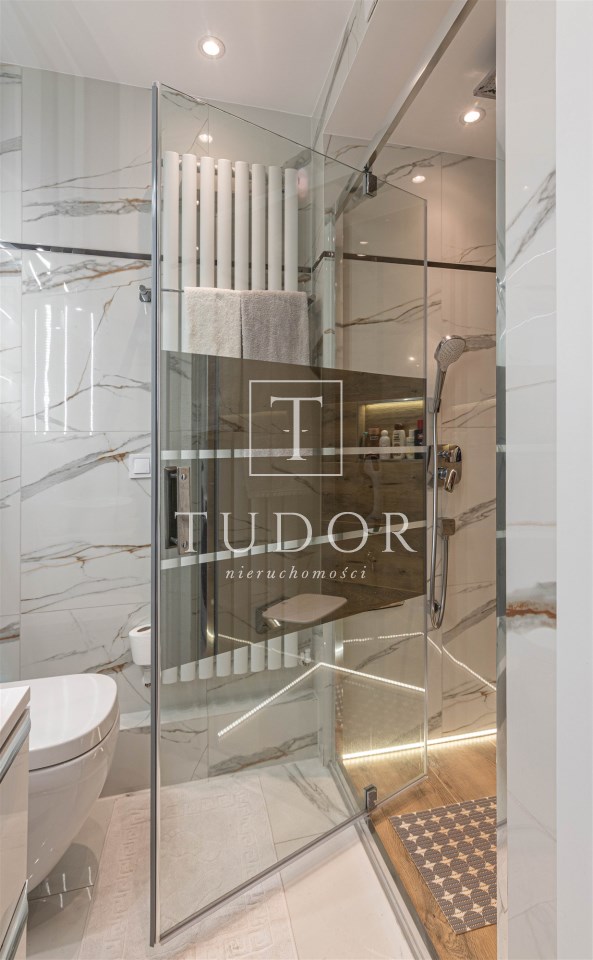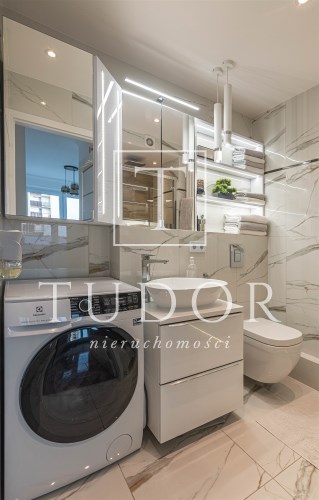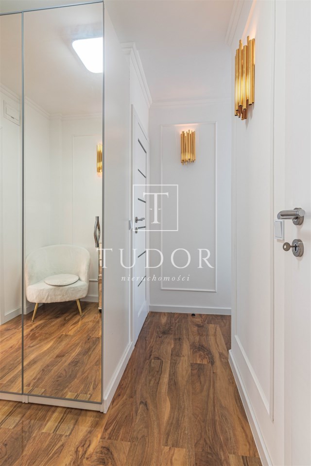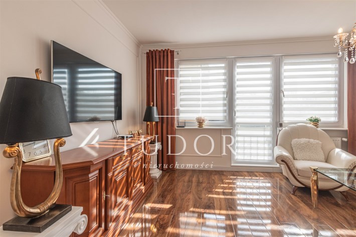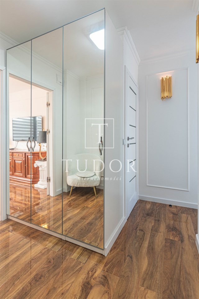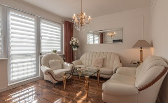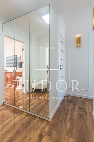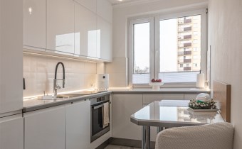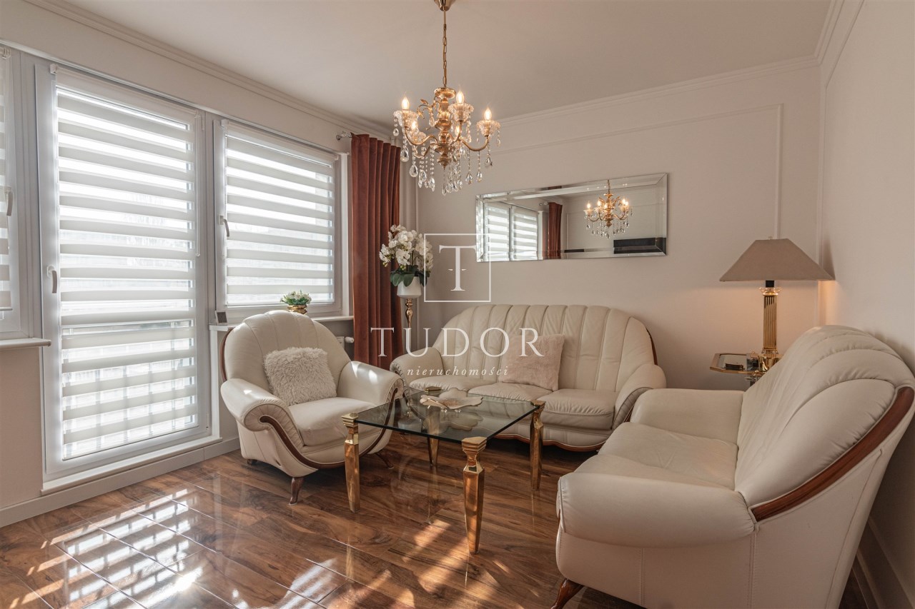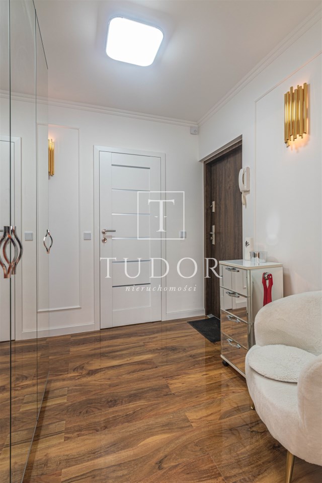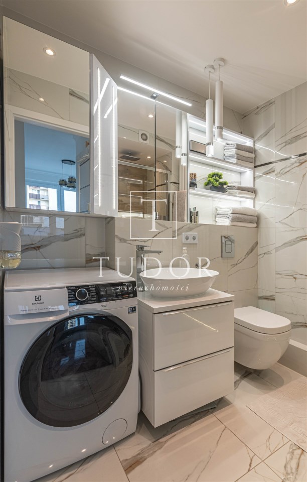 Mieszkanie kompletnie umeblowane i wyposażone; w dużym pokoju zestaw mebli skórzanych, komoda, odbiornik TV, w sypialni duże łóżko, szafa w zabudowie, odbiornik TV. Łazienka nowocześnie zaaranżowana z dużą kabiną prysznicową z krzesełkiem, wyposażona w pralkosuszarkę. W kuchni sprzęt AGD: lodówka z zamrażarką, płyta indukcyjna, piekarnik, okap, zmywarka. Dodatkowo zestaw sztućców, talerzy, garnków oraz innych urządzeń typu air-frayer, soda-strean, czajnik, itp. Mieszkanie wyposażone jest również w odkurzacz, suszarkę do ubrań, deskę do prasowania, żelazko, pościel oraz ręczniki.