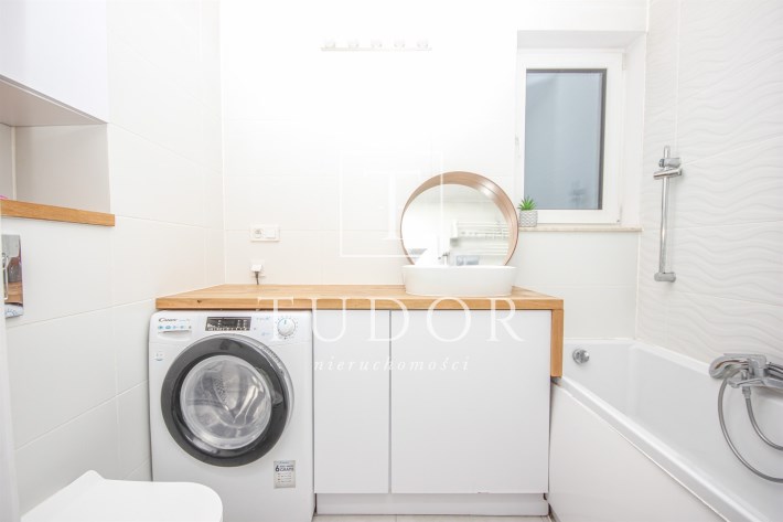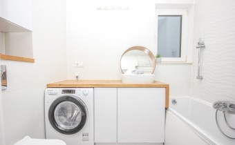 - łazienka z wanną i pralką,