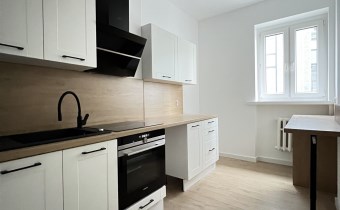 Mieszkanie przeszło generalny remont, m.in. modernizacja instalacji elektrycznej, wymiana wodno-kanalizacyjnej, wszystkie ściany wygładzone, pomalowane na biało. Wykonane zostały nowe podłogi (w tym wylewki betonowe).